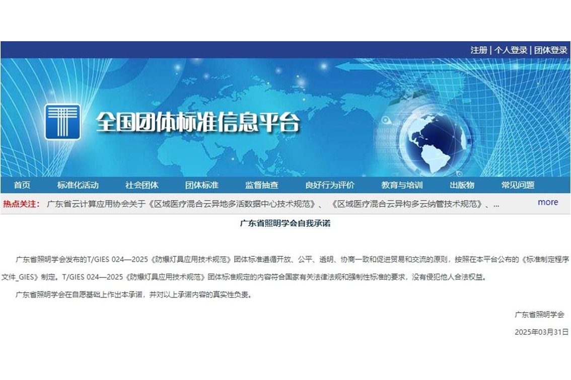 查看更多據(jù)全國(guó)團(tuán)體標(biāo)準(zhǔn)信息平臺(tái)官網(wǎng)消息,廣東省照明學(xué)會(huì)近期正式發(fā)布了T/GIES 024—2025《防爆燈具應(yīng)用技術(shù)規(guī)范》團(tuán)體標(biāo)準(zhǔn)。自發(fā)布之日起,該標(biāo)準(zhǔn)正式實(shí)施。